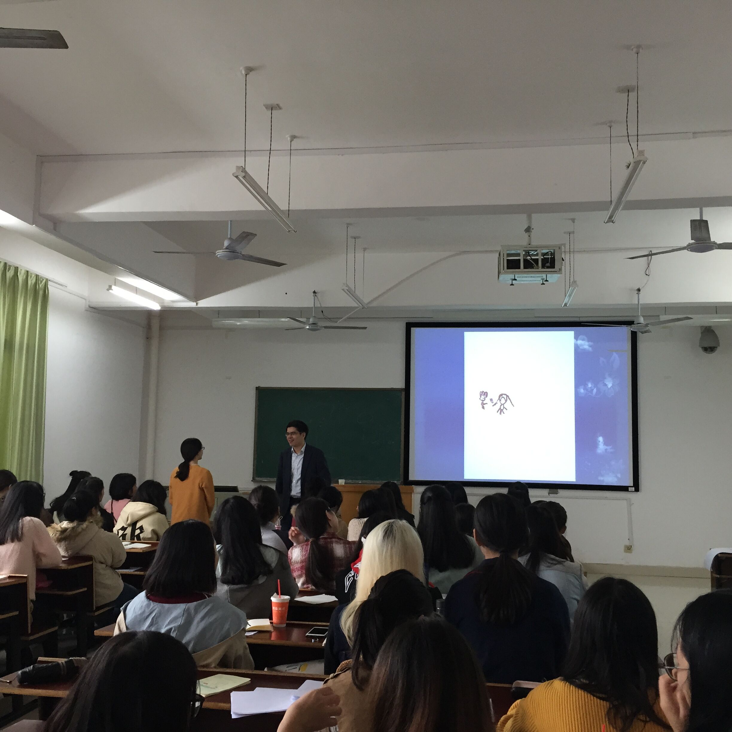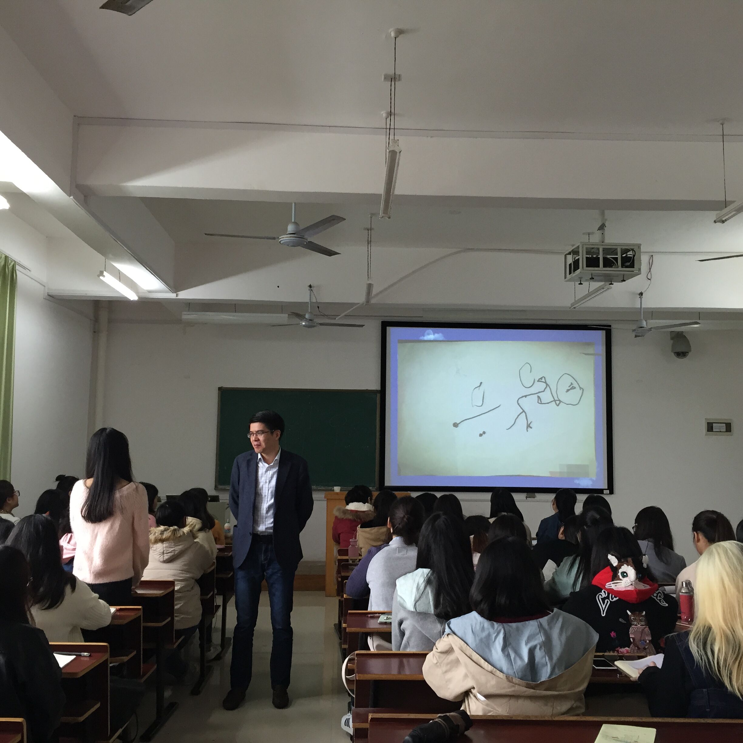 严博士凭着自己积累的丰富经验,生动幽默的讲解及分析了许多绘画心理方面的实际操作案例,并积极与学生互动,课堂气氛热烈,深得学生喜爱。