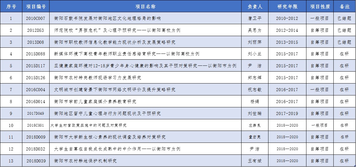 2008—2018年衡阳市社科基金立项项目(bv伟德国际1946)