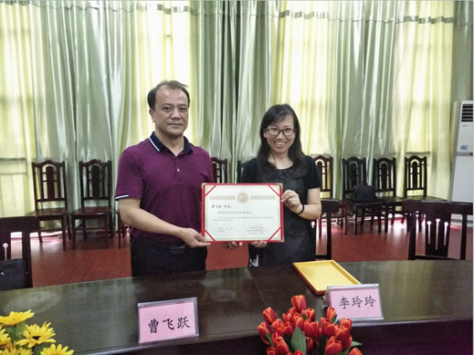 5月30日上午,曹飞跃客座教授聘请仪式暨学术报告会在我院举行。副校长李玲玲出席并为曹飞跃先生颁发客座教授聘请证书。