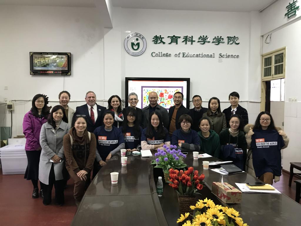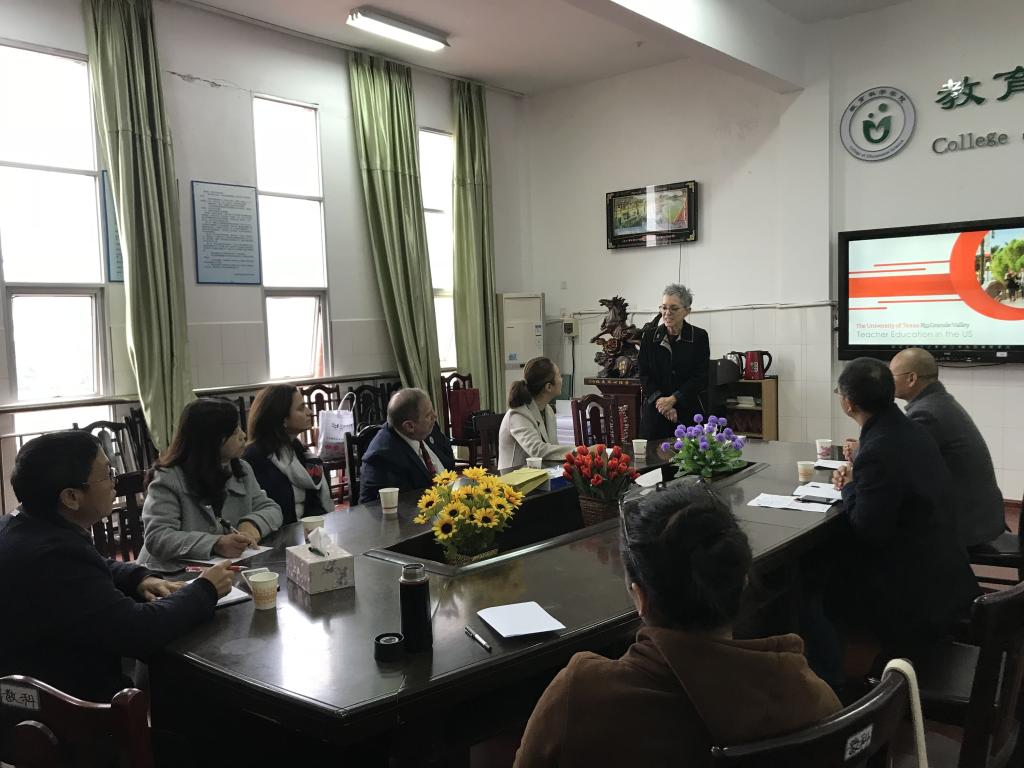 为进一步提高我院师范生培养质量,打造教师教育培养特色,11月14日下午,我院特邀请客座教授美国德克萨斯大学大河谷分校副校长Patricia Mchatton博士来院交流讲学。交流会在文综楼B309会议室进行,会议由我院主管科研副院长刘衔华教授主持,参加会议的有郑志辉副院长、教育学系主任黎利云博士及部分师生。刘院长对Patricia Mchatton 博士一行的到来表示热烈的欢迎,并向来宾介绍了bv伟德国际1946在教师教育培养上的基本框架和特色成果。之后Patricia Mchatton 博士为我院师生开展了题为“Teacher Education in the University Texas Grande Valley”的精彩讲座,介绍了德克萨斯大学在师范生教育培养上的宝贵经验,使我院师生受益匪浅。讲座结束后,参会师生就其感兴趣的方面与Patricia Mchatton 博士一行进行了深入交谈。