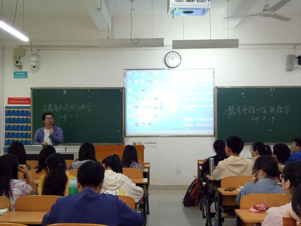 根据教学计划,黎老师还提供了一些中小学“体验式德育模式”视频给学生在课余观看,以便思考德育工作有效开展的具体方法。在5月23日的课堂上,黎老师提供了一个案例:某大学某学生给老师写信,陈述他某门考试调虎离山声东击西作弊成功的过程,还希望老师帮他修改几门课程的考试成绩,以便获得高级别奖学金,从而解决家庭贫困问题。该生还阐述很多类似“兵者,诡也”的观点。学生畅所欲言,从学生家庭、社会氛围、学校教育、评优评先过程中可能存在的腐败等多个角度谈了该生问题的成因、危害与解决建议。通过此案例,帮助学生认识了人性的复杂性、教育的艰难性、德育的必要性。