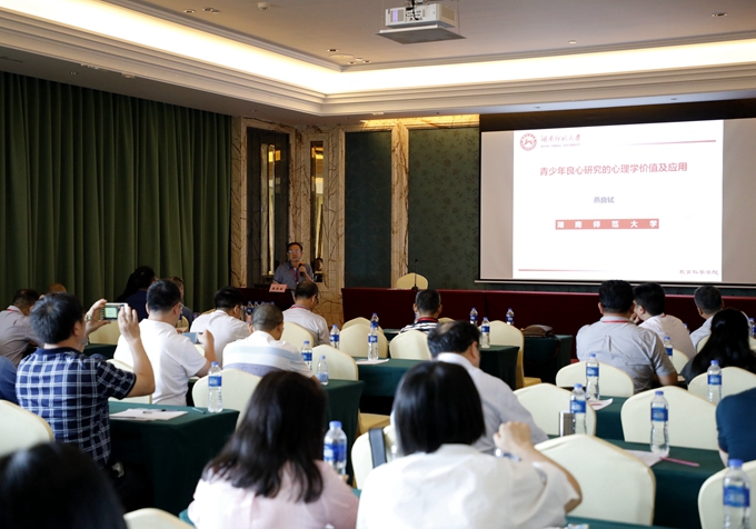 当天下午,大会进入学术报告环节。中南大学姚树桥教授作题为《重性抑郁障碍认知易感性的脑影像学研究》的学术报告,他认为,作为一类复杂的高级认知加工模式,抑郁认知易感性在重性抑郁障碍的发生与发展中的作用不可能用单个脑区或网络的异常来解释,由此提出了新的整合理论模型。湖南师范大学燕良轼教授以《青少年良心研究的心理学价值及应用》为题,引经据典、旁征博引,为大家带来了一场关于青少年良心研究的学术盛宴。他将良心这一抽象的概念解构成八个维度,从良心对心理健康的影响出发,提出了关于良心干预和培养的措施。