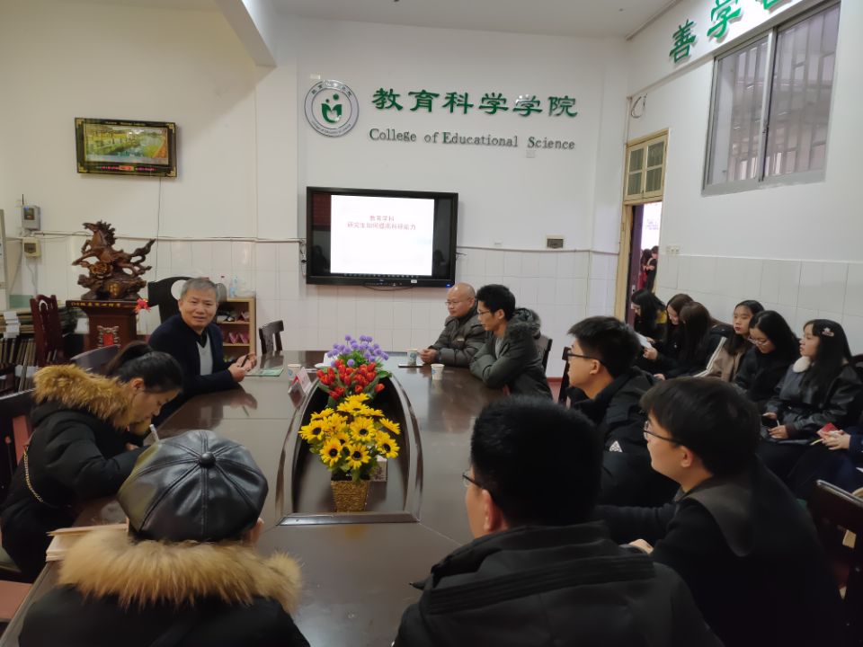 1227日下午,湖南大学博士生导师姚利民教授应邀来到学校,围绕“教育学科研究生如何提高科研能力”这一问题,为2019级教育硕士研究生支招解惑。