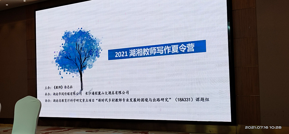 由《教师》杂志社主办、湖南华阅传媒有限公司承办的“2021湖湘教师写作夏令营”于2021年7月15-18日在长沙通程麓山大酒店举行。我院副教授黎利云博士率领湖南省教育厅科学研究重点项目“新时代乡村教师专业发展的困境与出路研究”(项目编号18A331)课题组部分人员协办了该活动。