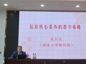 第二阶段,姚教授作《基于新课程标准的有效教学》的报告。首先谈到新课标核心素养的培养目标在于使学生成为有理想、有本领、有担当的时代新人。认为核心素养导向教学从知识入手,不以知识为终点,逐渐从知识本位教学转向核心素养导向教学。核心素养是教学的出发点、落脚点以及着力点。他还指出,学习中心课堂建立的过程是教转化为学的过程。教学过程是学生的学习过程,没有学,教的价值将荡然无存。他还强调,要把课堂还给学生,让学生真正成为课堂学习的主人要相信和利用学生的学习能力,确保学生进入学习状态,让学生学习在课堂真实发生。