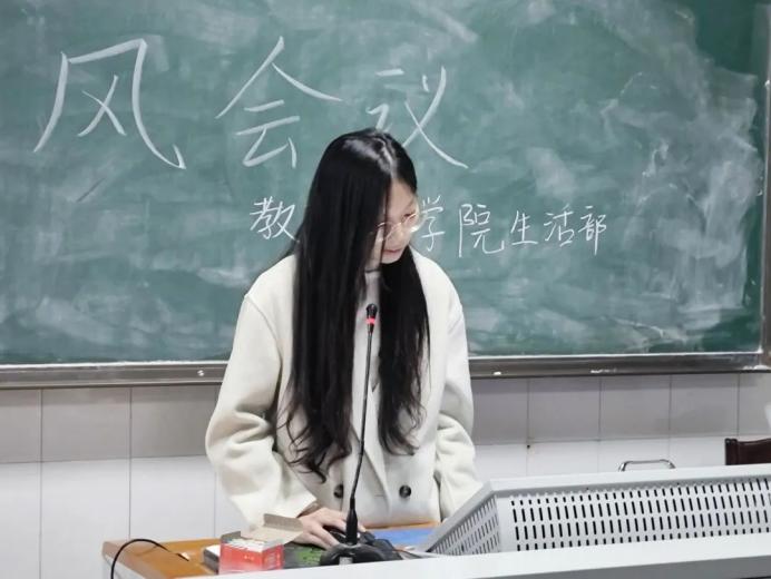 为提高学生们的自我安全意识,培养良好的卫生习惯,推动我院寝风建设良性发展,创设美好和谐的宿舍环境,近日,我院于行知楼302召开2024年上学期第一次寝风会议,此次会议由生活部部长项冰蕊主持,辅导员申鑫玉老师主讲,2021-2023级生活委员、寝室长、寝风督察员参加。