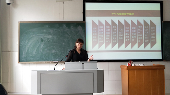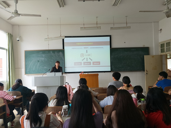 4月20日下午,我院在文D303教室开展了第三次学生中心组学习活动,本次活动的主题进一步贯彻落实习近平新时代中国特色社会主义思想,由党总支副书记罗耒英主讲。