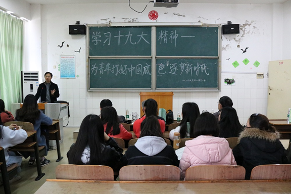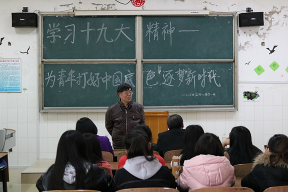 为了深入贯彻地学习党的十九大精神,3月23日,我院2016级应用心理学1班同学在文科楼A307教室召开了关于“学习十九大精神——为青年打好中国底色,逐梦新时代”的主题班会。本次活动由蒋湘祁老师主持,莅临此次班会的有离退处处长彭晖、关工委副主任唐承新、老干部王建生、刘克善、我院党总支书记陈君生和副书记罗耒英。