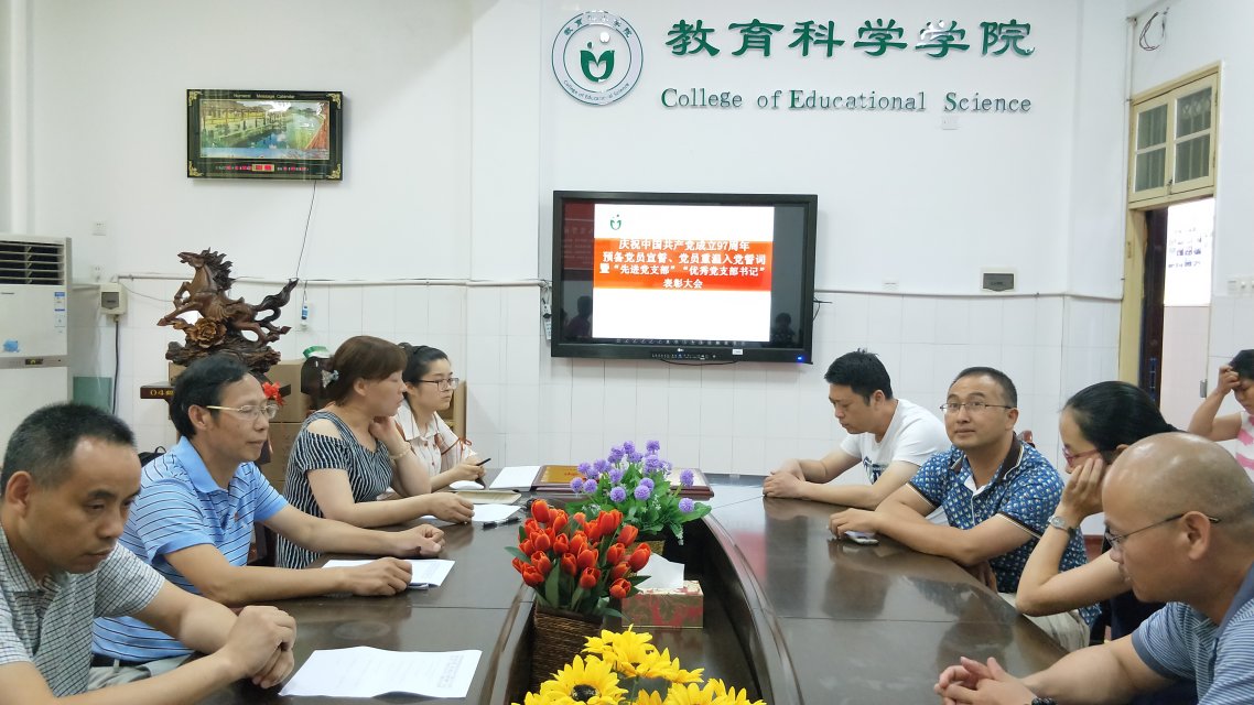 6月29日下午我院于文B309会议室举行了庆祝中国共产成立97周年“预备党员宣誓、党员重温入党誓词暨‘先进党支部’、‘优秀党支部书记’表彰会”。此次大会旨在让大家牢记入党誓词,增强党员意识,强化党性观念,自觉遵守党的纪律和政治规律,牢固树立正确的世界观、人生观、价值观,做合格党员,永葆共产党员的政治本色。我院全体师生党员参加此次大会。本次大会由党总支副书记罗耒英主持。