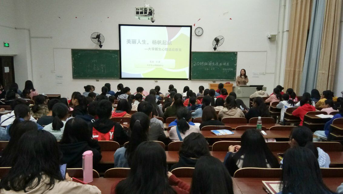 为了帮助大一新生尽快融入大学生活,提高新生对大学生活的适应能力。10月17号晚7:30,我院于外语楼北301教室开展了以“美丽人生,扬帆起航”为主题的新生适应性讲座。18级全体学生参与了本次讲座,该讲座由大学心理健康中心的吴贞老师主讲。