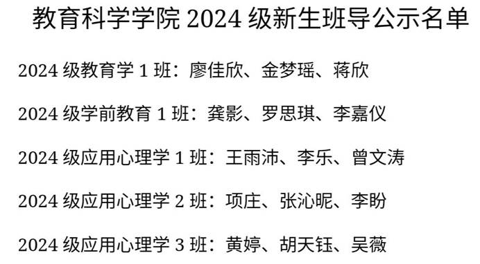 根据公平、公正、公开的原则,经个人申报、资格审查、演讲竞聘并报学院党总支审核研究,拟确定以下同学担任我院2024级新生班导助理,现将评选结果予以公示: