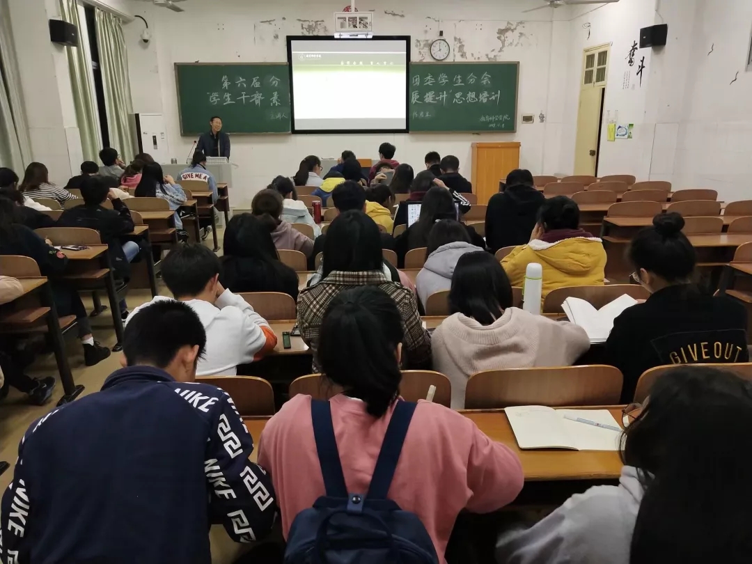 为了提高学生干部综合素质和能力,11月8日晚上7:30,我院党总支书记陈君生教授于文综楼A307为第六届院团学会干部举行培训讲座。本次讲座以学生干部素质和能力的提升为主题,学院学生分会和分团委干部及18级班长、团支书等60多人参加,讲座由分团委书记陈松同学主持。
