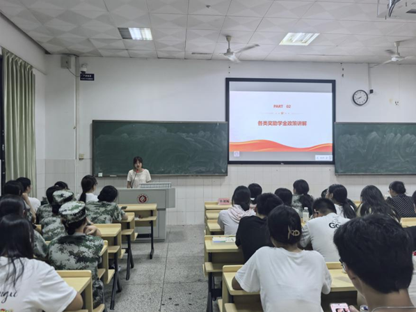 为全面落实“立德树人”根本任务,推动发展型资助育人体系建设,帮助2025级新生全面了解国家和学校的各项资助政策,我院于2025年9月28日在西行知楼602举办了以“助力成长,筑梦前行”为主题的资助政策宣讲会。本次活动由辅导员单胡杨老师进行政策讲解,资助部同学组织并主持,2025级全体新生参加。