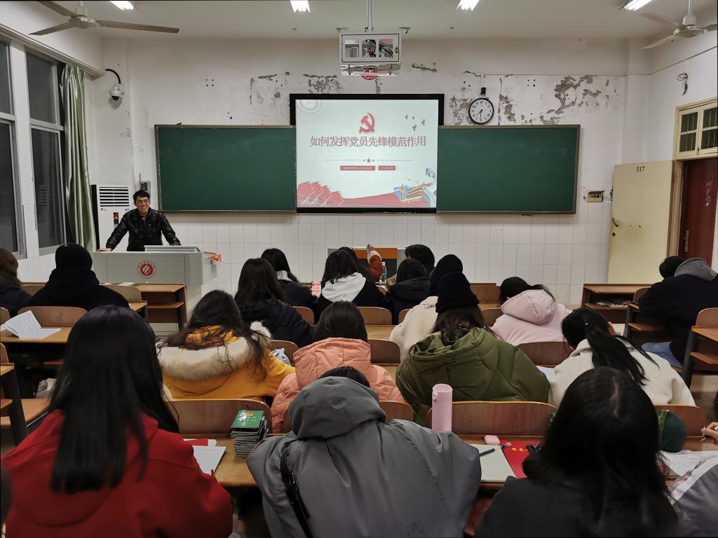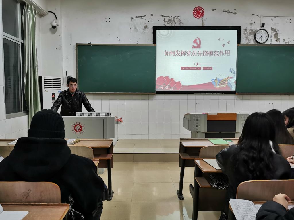 12月14日晚,我院第四次中心组学习在文综楼A307举行,本次中心组学习的主题为“发挥党员先锋模范作用”,由我院辅导员杨威老师主讲,全体中心组成员参与学习。