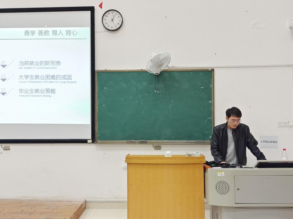 辅导员杨威老师通过分析目前岗位减少与毕业生人数增加的就业形势提出同学们改变求职方式,关注秋招和春招,走校招道路制作简洁精确,美观规范的简历的就业对策。