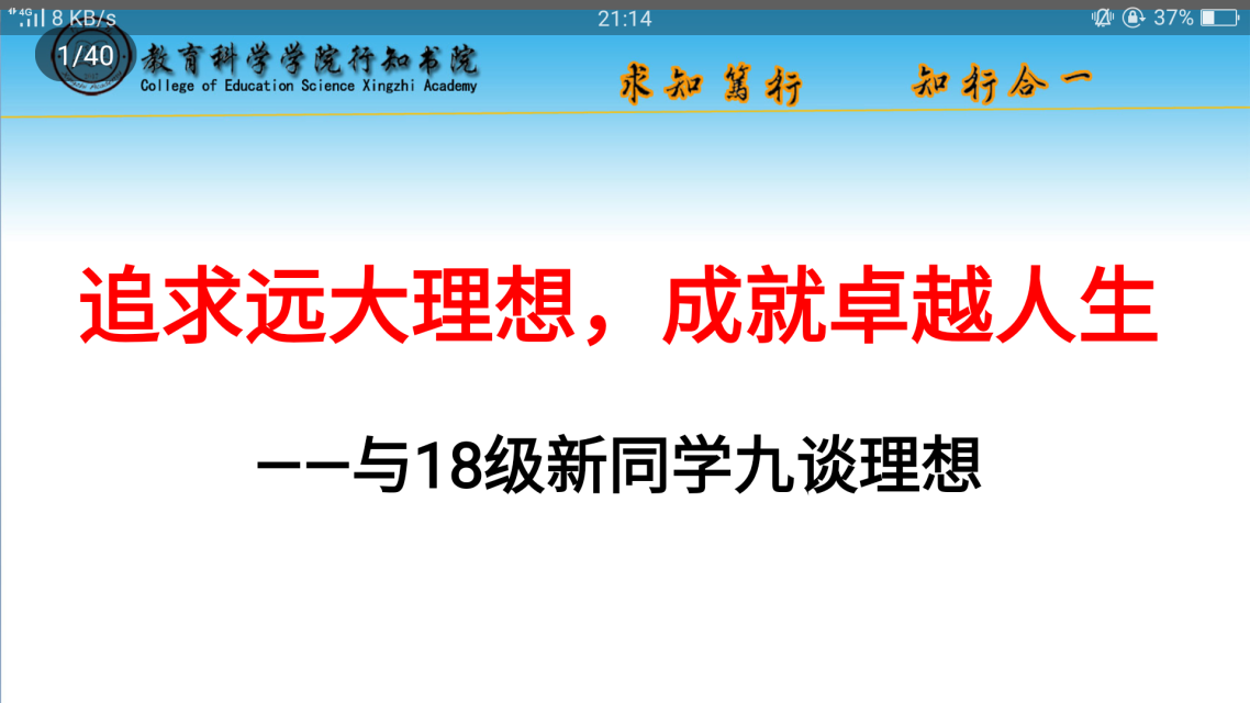 行知教育讲堂第七讲:追求远大理想,成就卓越人生———与18级新同学九谈理想