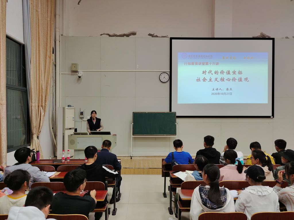 为引导同学们培育和践行社会主义核心价值观,提高同学们的综合素质,10月27日晚,我院以“时代的价值坐标——社会主义核心价值观”为主题的教育讲座在外语楼北110举行。该讲座由学工处处长蒋杰主讲,我院党总支副书记刘辰主持,辅导员曹喜燕、杨威、2020级全体学生参加。