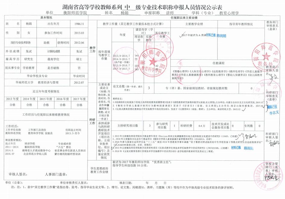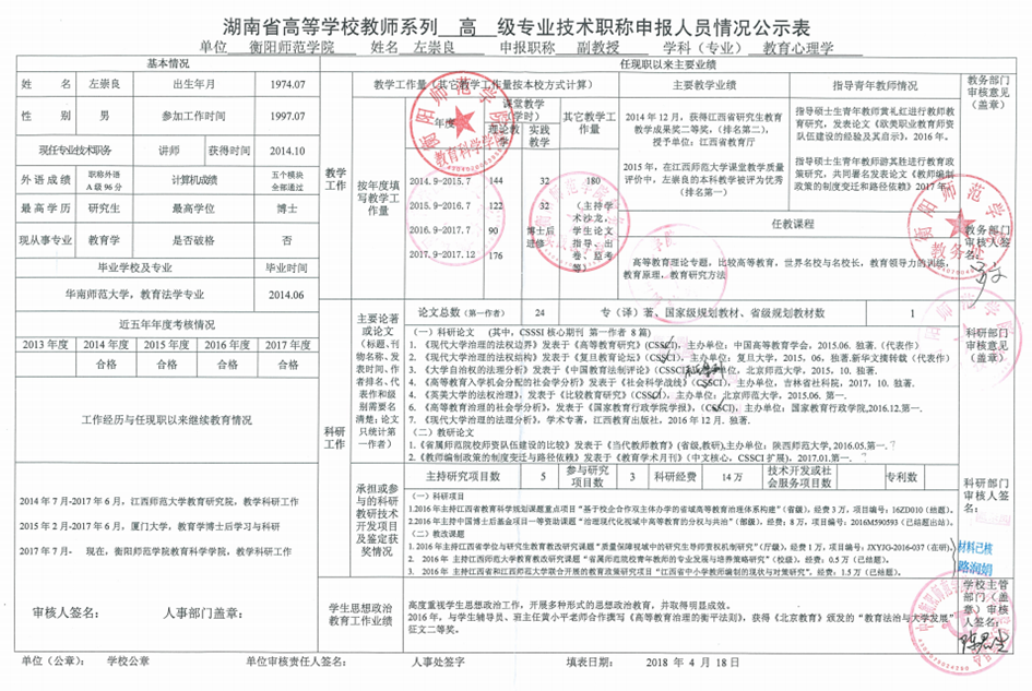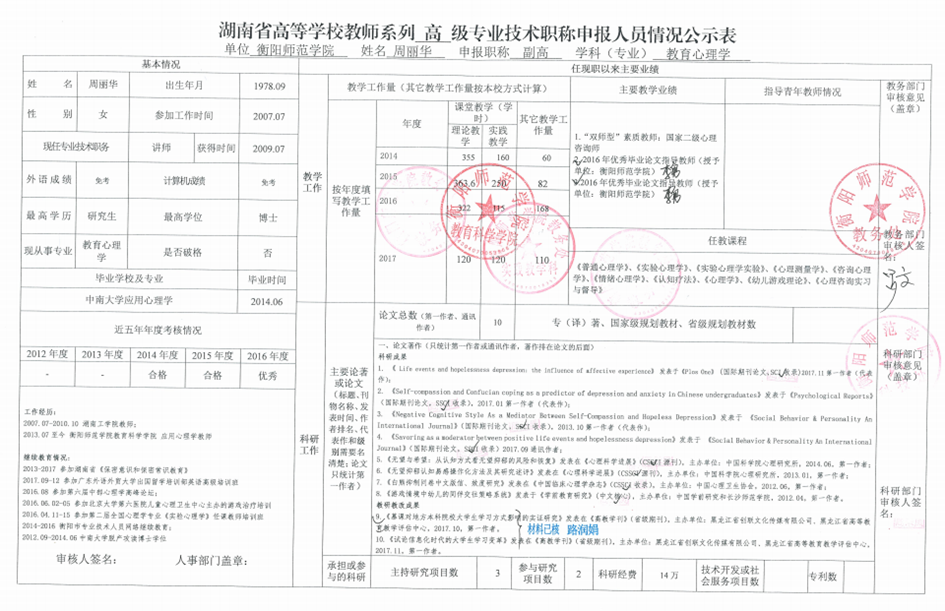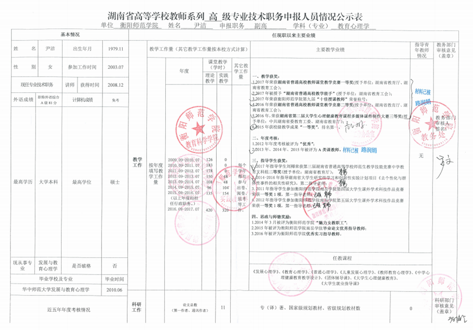 附件二:湖南省高等学校教师系列专业技术职务申报人员情况公示表