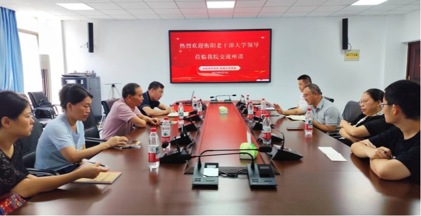 为推动老年教育理论研究与实践创新深度融合,探索具有衡阳特色的老年人教育,2025年9月5日,我院与衡阳老干部大学的领导,于行知楼412开展了交流座谈会,出席此次会议的有: 我院院长郑志辉,心理学系陈贵博士、夏骁凯博士、刘罗博士,衡阳老干部大学范定生校长。