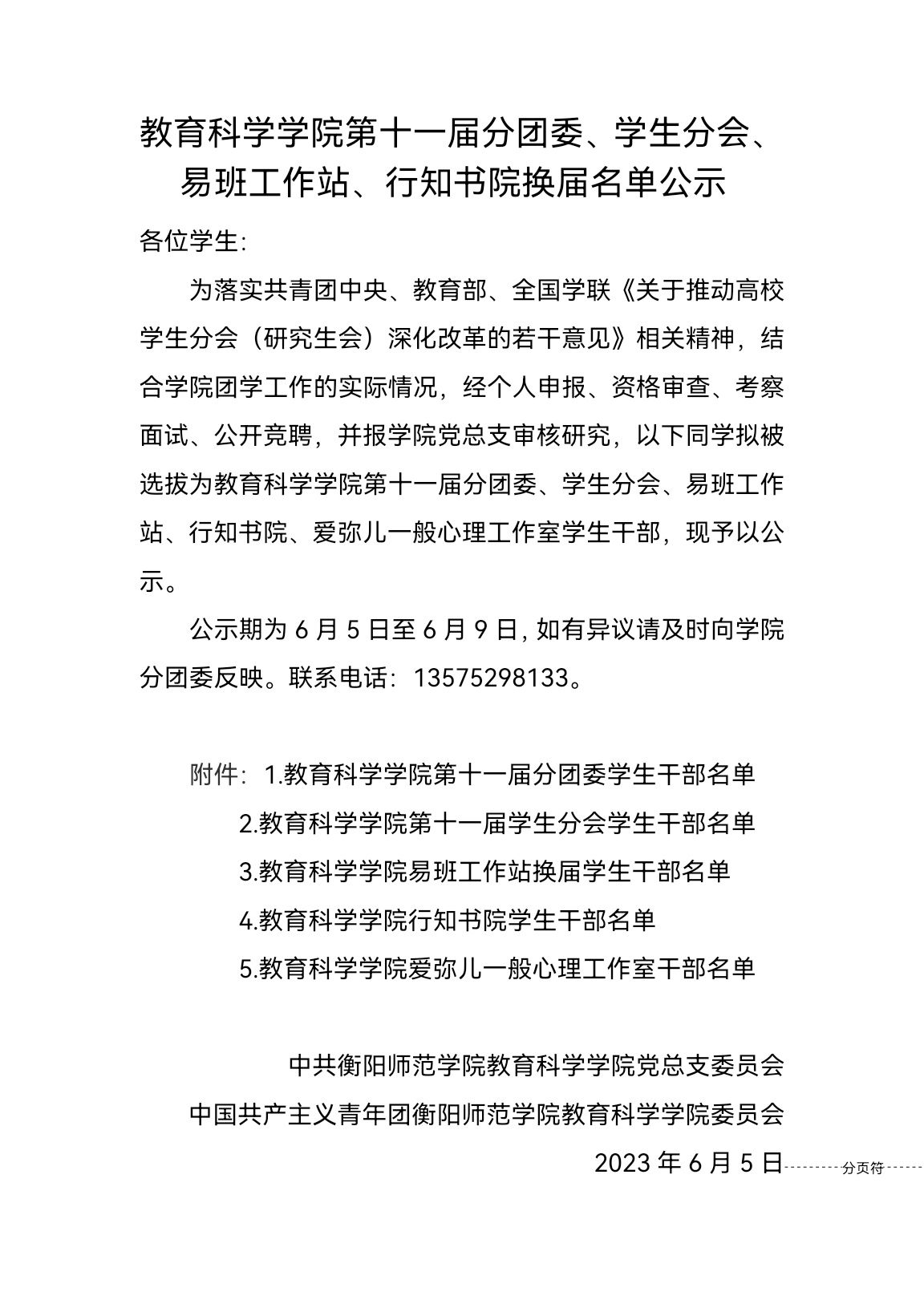 bv伟德国际1946第十一届分团委、学生分会、易班工作站、行知书院换届名单公示