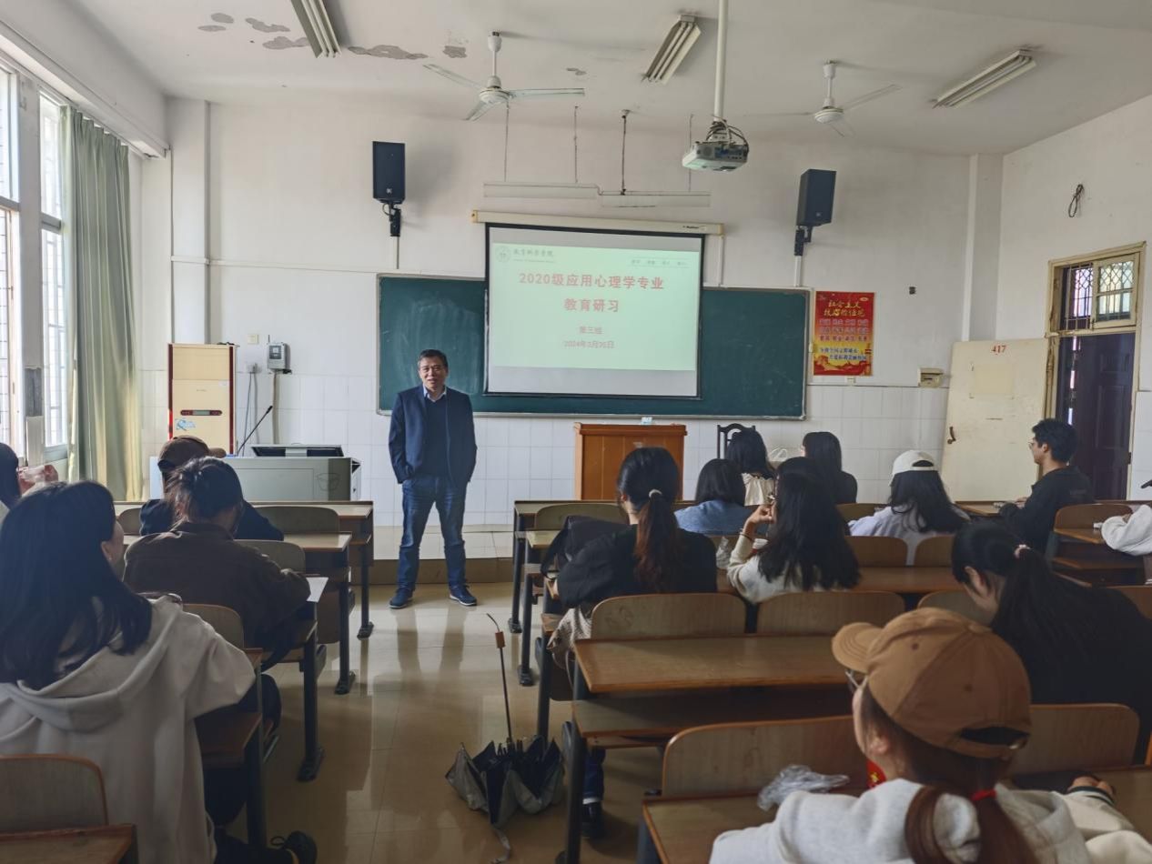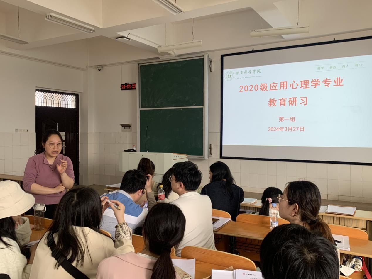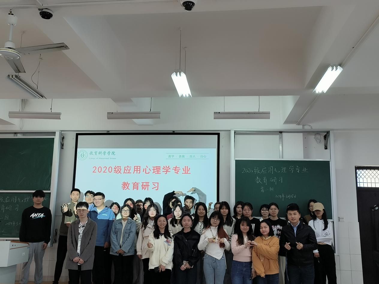 为巩固和拓展专业教育实习成果,深入总结反思教育实习的成功经验,促进“理论—实践—再理论”的循环提升,进一步引导师范生树立正确的教育理念,提高教育理论水平和教学实践能力,增进教育教学智慧,在心理学系刘罗、刘世瑞、陈贵、卢鑫、张照等5位老师的共同指导下,我院应用心理学专业2020级160名学生于3月23日——3月29日在东校区文科楼开展了为期一周的教育研习工作。在此次教育研习活动中,同学们积极分享了在实习学校的所见所闻,以“研”的视角深入探讨了实习中的得与失,并通过课堂教学展示展现了自己的成长与收获。通过聚焦“6研”——研究课程、研究教材、研究学生、研究课堂、研究校园、研究自己——来全面检视教育实习,巩固和升华实习成效。