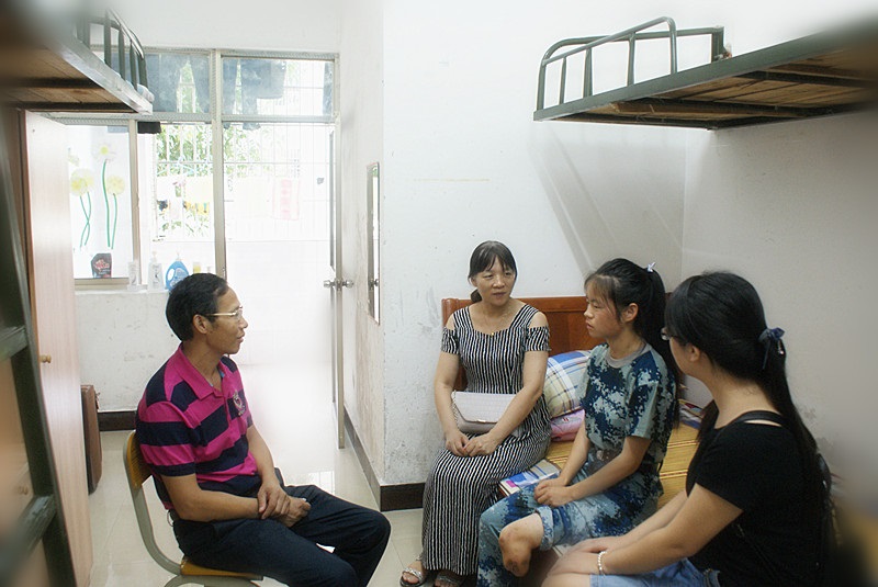 开学第一天,我院党总支书记陈君生、副书记罗耒英与学生辅导员曹喜燕走访了学生宿舍,并深切探望了童明莲同学。在走访过程中陈书记了解了她现在的生活状况,并在之后详细询问了童明莲同学的学习、学费筹措等情况。陈书记说,在学校里老师就如同父母一样,有困难找老师,有任何需要帮助的地方可以跟老师反映。并鼓励她自立自强,继续保持乐观开朗的心态,克服困难,努力学习,练好教师的基本技能,争做卓越师范生,今后成为一名卓越教师。党总支副书记罗耒英说,童明莲同学的情况特殊,在政策允许的情况下,学校、学院将会重点给予关爱和帮助。