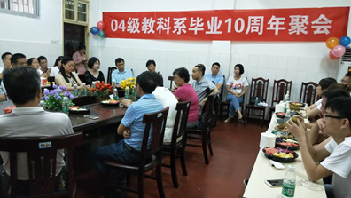 首先由唐院长致辞,他代表学院全体教师对04级应用心理学专业校友回母校聚会表示热烈的欢迎,感谢他们一直以来关注、关心和支持学院的发展。然后简要介绍了我院10年来在专业建设、学科建设、师资队伍建设、教学科研、招生就业等方面取得的成绩及发展情况。唐院长说,经过学院领导和老师们的共同努力,学院各项工作和项目建设取得了可喜的成绩,与其他学校的同类学院相比我们有自己的优势,特别是去年获得了教育硕士学会授权点,实现了我们多年来的目标。希望校友们常回母校交流,为学院发展建言献策。