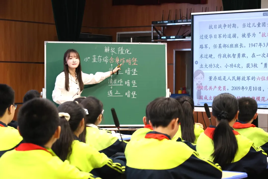 刘嘉欣老师讲授《董存瑞舍身炸暗堡》时,慷慨激昂的讲述,将那段波澜壮阔的历史重现在学生眼前。董存瑞的英勇无畏,如同一座不朽的丰碑,在学生们心中深深扎根,激发着他们的爱国情怀与奋进之志。