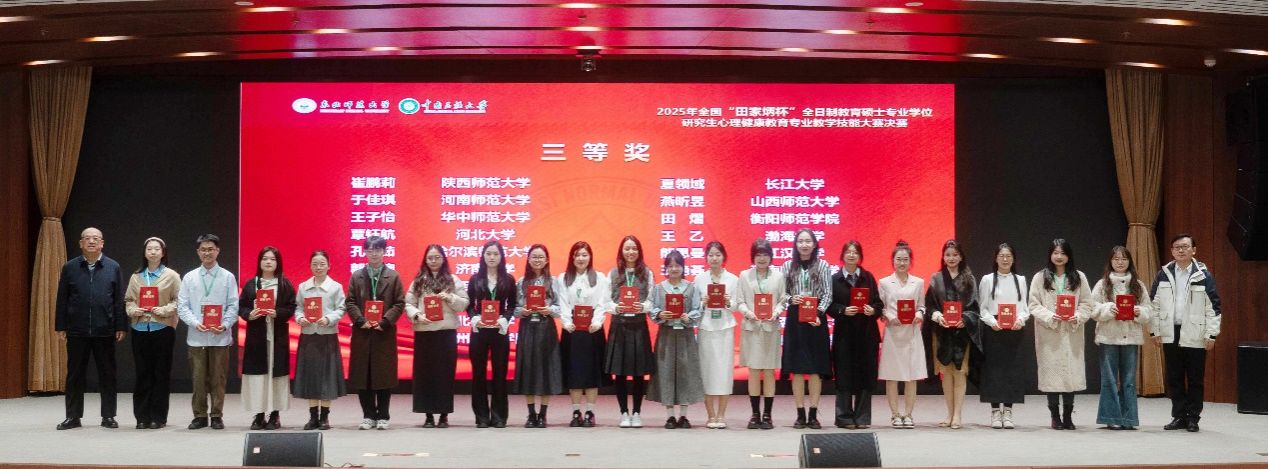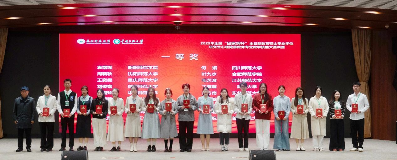 2025年全国“田家炳杯”全日制教育硕士专业学位研究生心理健康教育专业教学技能大赛于10月19日圆满落下帷幕。其中,由唐芳贵副校长、尹洁教授指导的3位参赛研究生均获佳绩:袁熠烽同学获得全国一等奖,田熠同学获得全国三等奖,张文涵同学获得全国优秀教学设计奖,实现了该竞赛一等奖的突破。