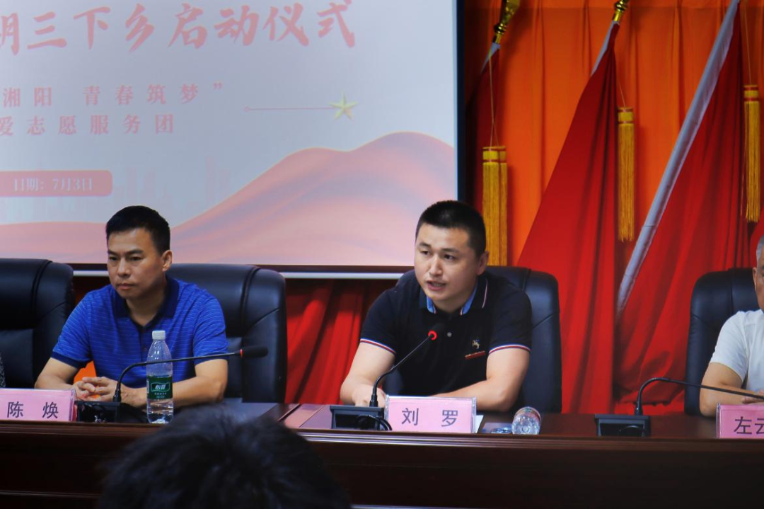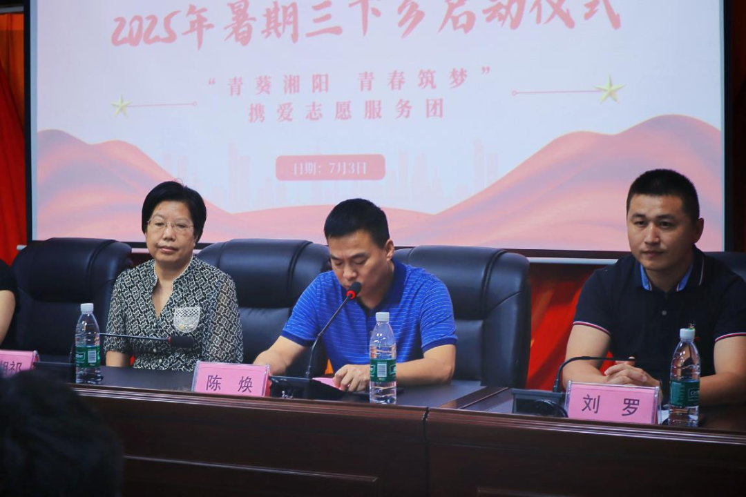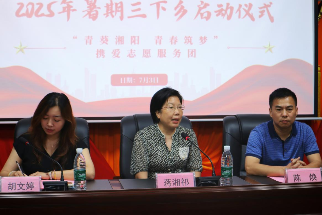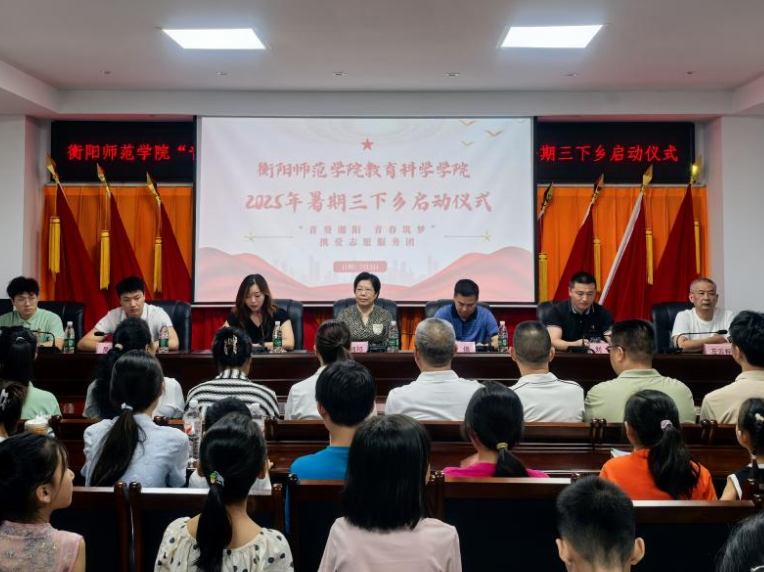 2025年7月3日,bv伟德国际19462025年大学生暑期“三下乡”社会实践活动在衡阳市雁峰区岳屏镇东湖村会议厅正式拉开帷幕。岳屏镇人大主席陈焕、岳屏镇党委委员胡文婷、心理健康教育湖南省科普基地兼衡阳市青少年心理健康教育科普基地首席专家蒋湘祁、bv伟德国际1946心理学系主任刘罗以及学学生党支部书记吴金煌等出席本次启动仪式。