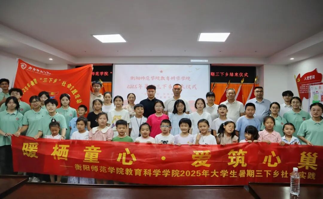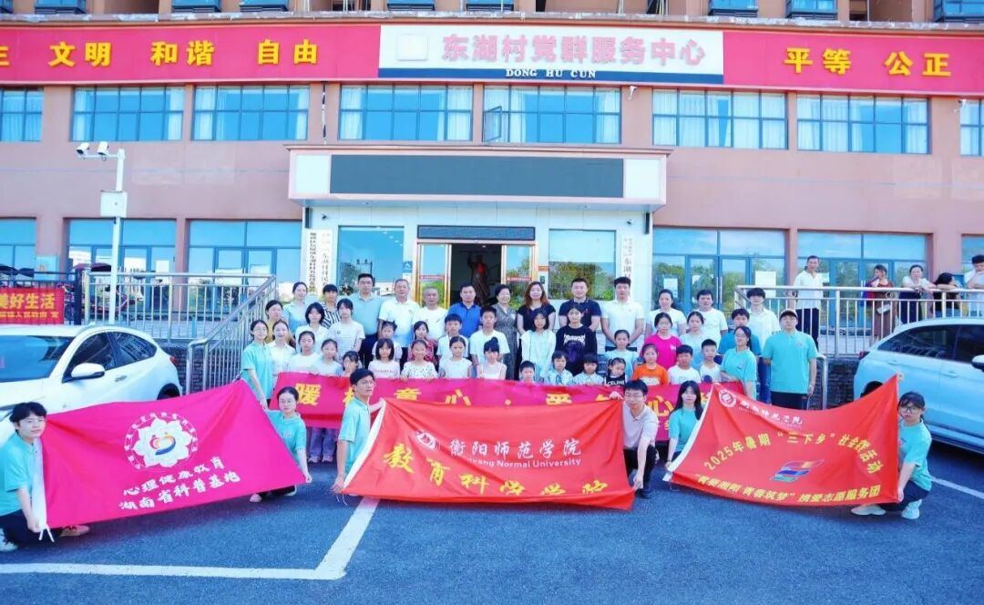 7月3日至7月7日,bv伟德国际1946“青葵湘阳,青春筑梦”携爱志愿服务团在指导老师刘罗博士的带领下,陈胜昔、张婕等10名本科生和袁熠烽等3名研究生志愿者前往衡阳市雁峰区岳屏镇东湖村开展了为期五天的“三下乡”社会实践,于7日下午圆满收官。结束仪式上,志愿者们挥舞着亲手绘制的团队旗帜,与村民代表齐声高唱《那些花儿》,激昂的歌声在村会议室久久回荡,为这场充满专业深度与青春温度的实践画上动人句号。