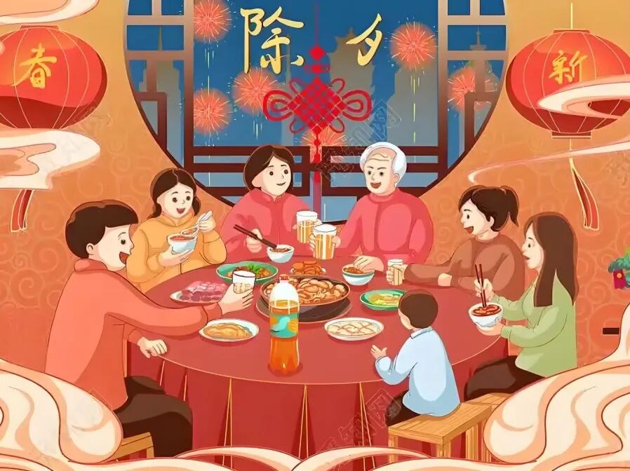 除夕,为岁未的最后一天夜晚。岁未的最后一天称为“岁除”,意为旧岁至此而除,另换新岁。除,即去除之意;夕,指夜晚。“除夕”是岁除之夜的意思,又称大年夜、除夕夜、除夜等,时值年尾的最后一个晚上。除夕夜是一首美丽的诗篇,它描绘出家的温馨与团圆的力量。在这个充满希望的时刻,让我们怀瑞着对未来的憧憬和家人的祝福,共同迈向新的一年。 家人相聚,情谊深重。在除夕夜的时刻,亲朋好友间的拜年祝福传递着温暖和关爱。无论是远方的寄语还是身边的拥抱,都成为了这个特殊时刻最珍贵的记忆。烟火起,照人问,举杯,敬此年;烟花落,四季平,举杯,贺新年。