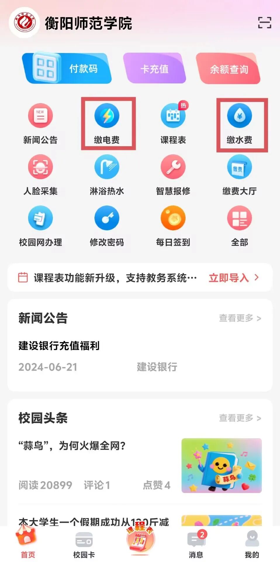热水:卫生间热水系统开放时间为早上6:30-9:30,中午12:00-14:00,晚上17:00-23:30。学生可登录"中晟智校"进行充值和使用(详情可见宿舍内张贴的流程图)。部分宿舍的奇数层配备热水饮水器,可以通过校园卡取水。宿舍楼一楼还有桶装饮用水可以购买。