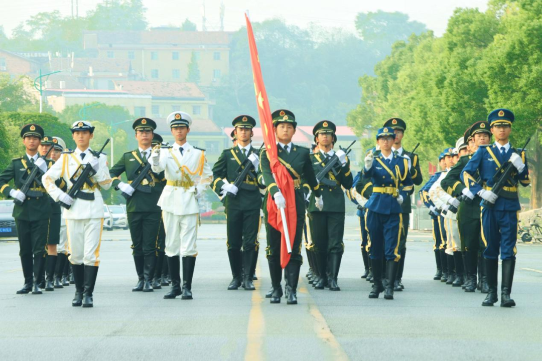 晨曦微亮时,伟德国际victor1946军事技能教导队迈着铿锵有力的步伐护送国旗入场,《义勇军进行曲》激昂奏响,五星红旗在晨光中冉冉升起,全体师生肃立敬礼,广场外路过的同学亦驻足凝望、行注目礼,赤诚与敬意在晨光中交织成动人的画面。