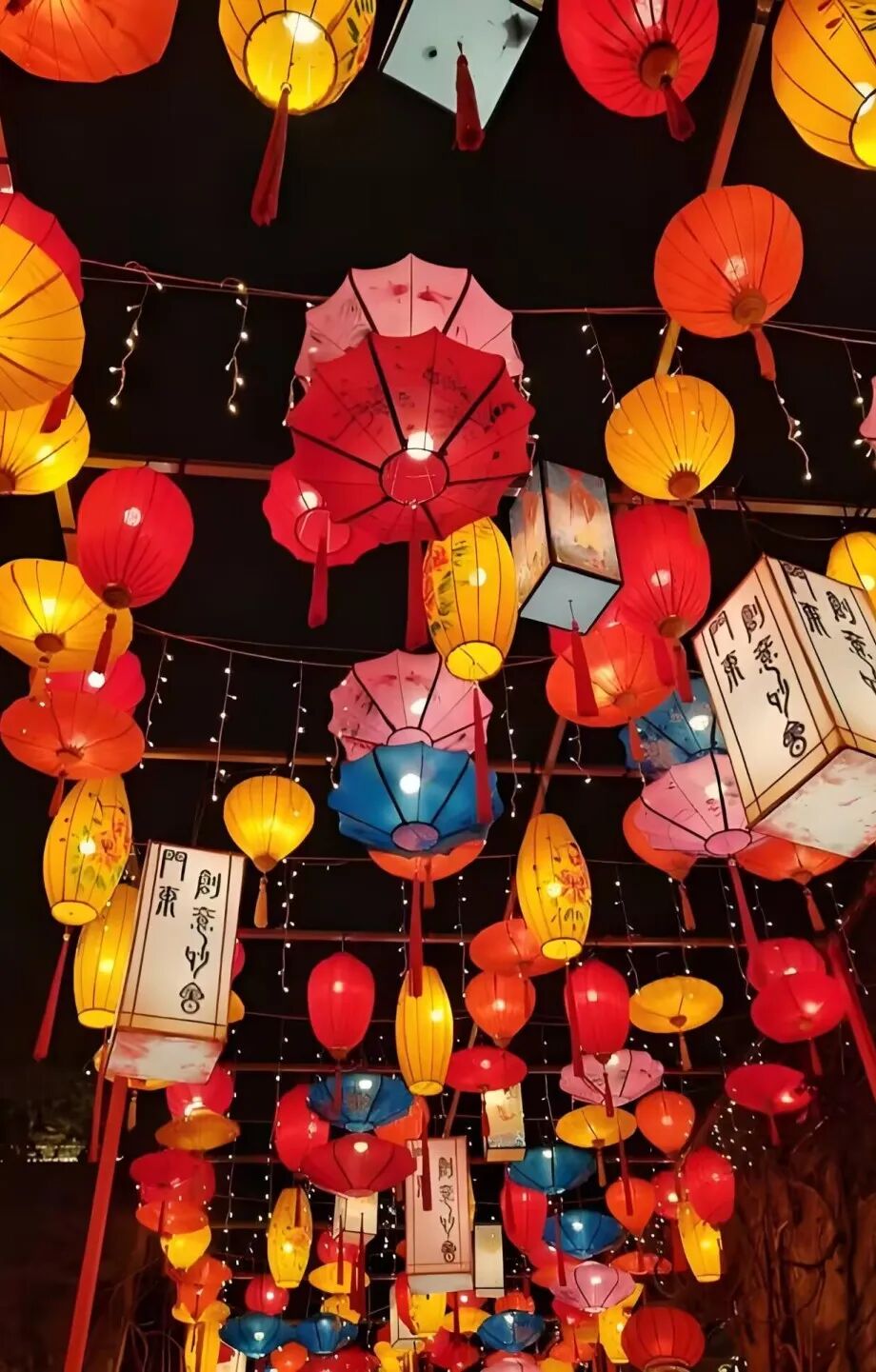 街市上花灯如星河倾落,鱼龙舞动,灯谜藏趣。孩童提着小兔灯穿梭嬉笑,恋人在河畔放走一盏许愿的孔明灯。火光摇曳中,千百年来相同的是人们对美好的祈愿——愿灯火照亮前程,愿所爱之人常伴身旁。