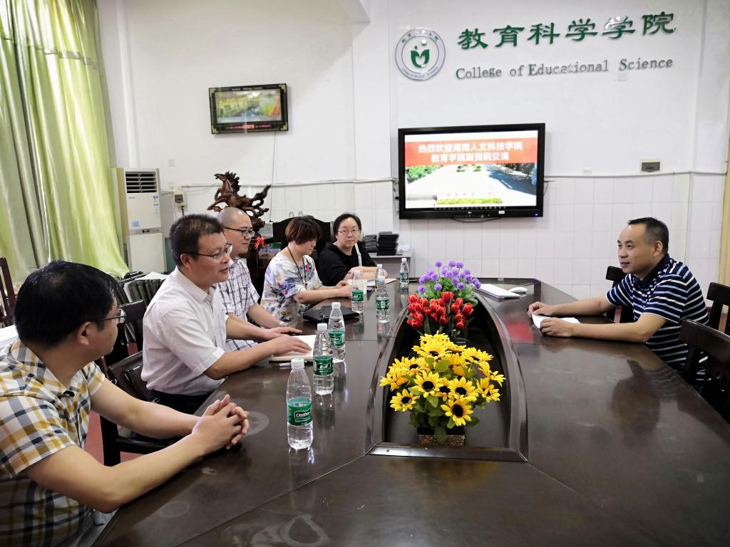 2019年6月28日上午,湖南人文科技学院教育学院院长刘超良教授一行五人到我院,考察交流本科教学审核评估工作。会议在我院会议室召开,院长唐芳贵教授出席并主持会议。