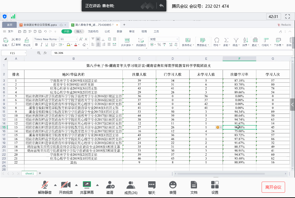 最后,由曹老师总结此次会议。曹老师对我院团日活动开展情况进行了充分的分析并提出了建设性建议,嘱咐每班团支书将会议精神传递到位,并期望我院学生积极参与团课学习,争取下一次的团课学习率有所提高。
