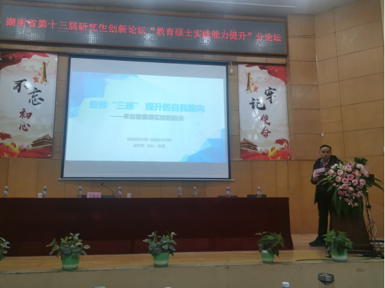 12月15日下午,湖南省第十三届研究生创新论坛“教育硕士实践能力提升”分论坛在湖南理工学院举行。此次论坛由湖南省人民政府学位办、湖南省教育厅主办,由湖南理工学院承办。来自全省的近200名硕士研究生参加论坛。我院唐芳贵院长应邀出席并作专题报告。