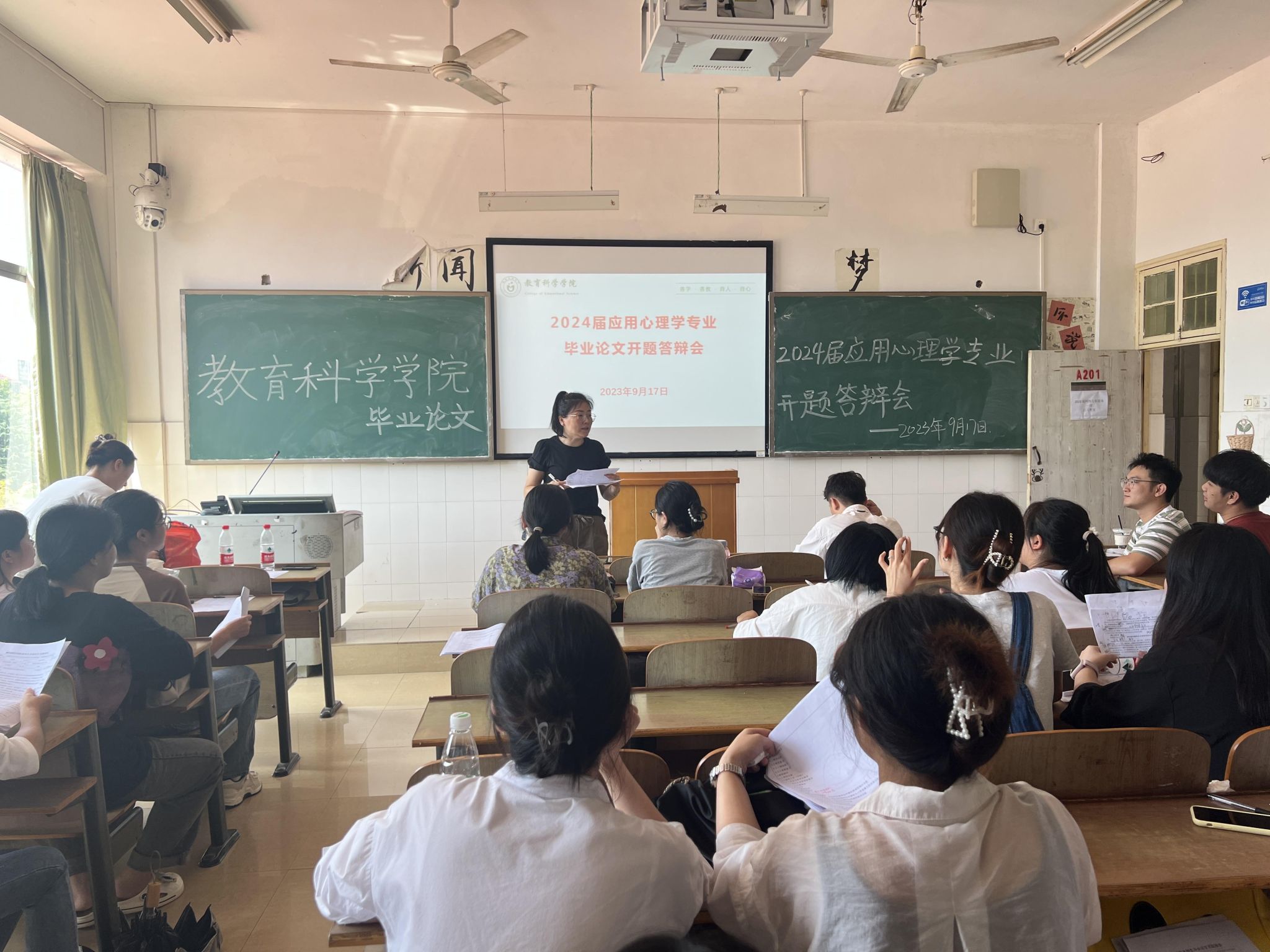 为切实做好2020级本科生毕业论文指导工作,9月17日上午,我院心理学系应用心理学专业在东校区文科楼A201、A207、A302、A303、A307多媒体教室举行毕业论文开题答辩。2020级应用心理学专业毕业论文指导老师,以及160名学生共同参与。