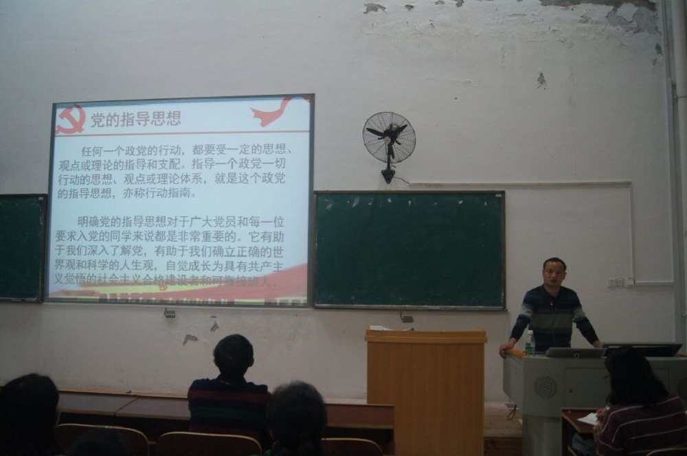 陈校长首先阐述了党的指导思想。他指出党的指导思想是我们全党的理论基础和行动指南。他通过回顾党的历史事件,以具体的事例说明了毛泽东思想,邓小平理论,三个代表重要思想以及科学发展观对中国革命和建设发展起到的推动作用,陈校长还就“如何用中国特色社会理论体系武装头脑”问题对同学们提出了四个要求:“一是坚持理想信念;二是坚持“四个自信”;三是牢记党的宗旨;四是具备“四种意识”,并希望16级学生努力学习,增强爱国热情与振兴祖国的责任感和使命感。陈校长的党课结合他丰富的工作经验和人生阅历,结合学生思想实际,内容丰富、语言精练,注重理论性、思想性、针对性和艺术性的结合,极具感召力,同学们受到了深刻的党性教育。