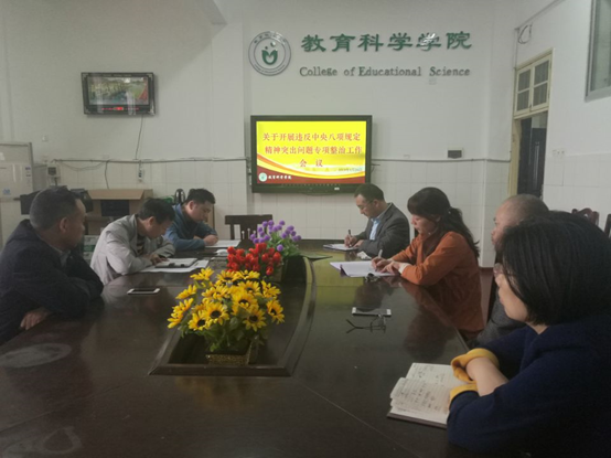 426日上午,在收到学校下发的《关于印发〈伟德国际victor1946关于开展违反中央八项规定精神突出问题专项治理的工作的实施方案〉的通知》后,我院党总支立即在文B309会议室召开了关于开展违反中央八项规定精神突出问题专项整治工作会议,学院领导班子成员和办公室主任参加会议,会议由党总支书记陈君生主持。陈书记首先传达了《伟德国际victor1946关于开展违反中央八项规定精神突出问题专项治理的工作的实施方案》精神。接着,陈书记结合学院实际,进行了工作部署,并对专项整治工作提出了具体要求。一是要高度重视,成立学院专项工作组,明确工作责任。二是起草方案,做好规定动作,明确治理工作重点。三是严格要求,自查自纠,及时上报。