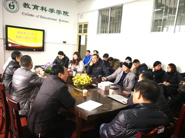 为了学习贯彻全国教育大会精神,特别是学习习近平总书记在大会上的重要讲话精神, 10月23日下午2:30,我院在文综楼B栋三楼会议室召开学院第三次政治学习报告会。全体党员和教师参加学习会。会议由党总支书记陈君生主持。