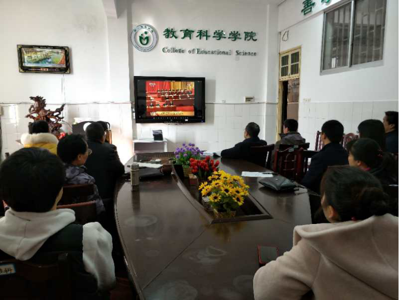 10月18日上午10:00,我院党总支于文综楼B309会议室组织师生党员集中收看了庆祝改革开放四十周年大会电视直播,学院党政班子成员、党员和部分没课的师生观看了大会直播。