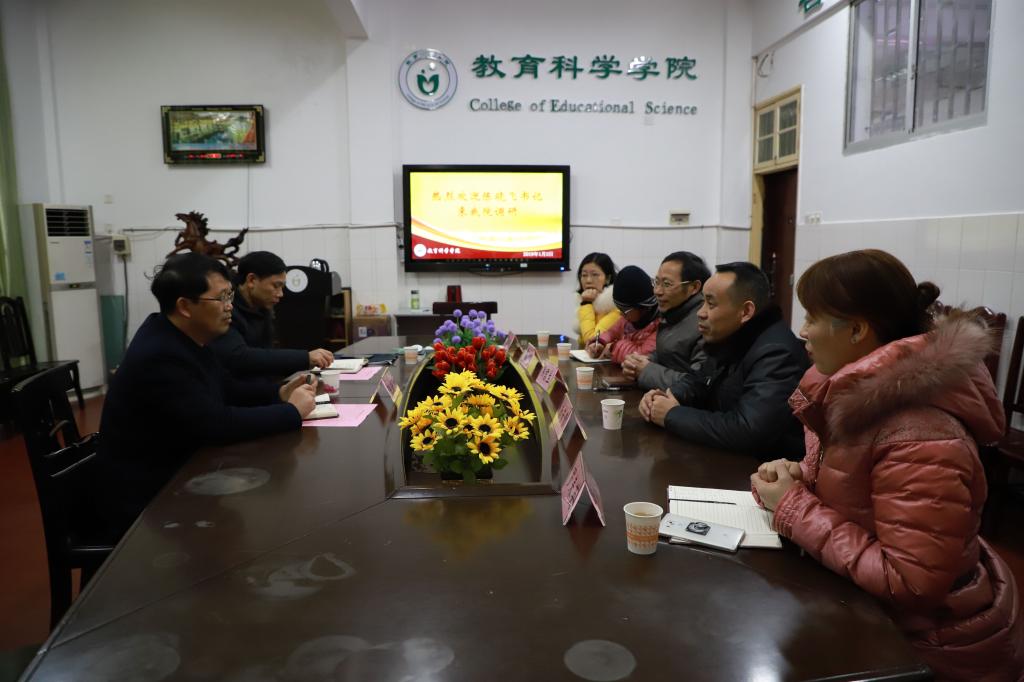 2019年1月2日下午4:00,学校党委书记陈晓飞在党政办公室主任邓双喜陪同下到我院开展走访调研工作,在家学院党政领导班子成员参加会议。