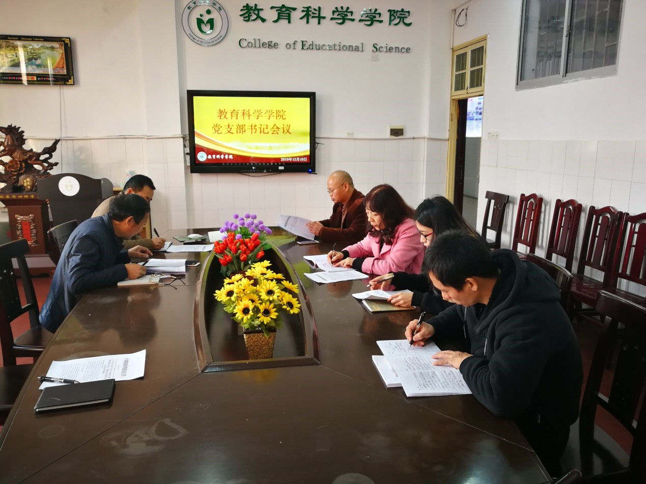 12月10日下午4点,我院党总支在文B309会议室召开了党支部书记会议,本次会议由党总支书记陈君生主持,党总支副书记罗耒英、教工党支部书记刘衔华、吴云鹏和学生党支部书记王有斌、曹喜燕及研究生党支部书记肖如兰参加会议。