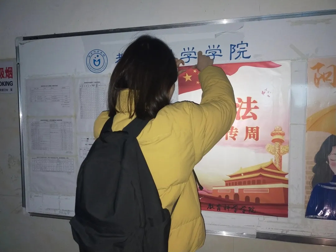 团委书记曹喜燕老师精心部署,各部门明确分工,做好了活动前期宣传工作。学院宣传部紧扣本次活动主题进行海报制作,并张贴于bv伟德国际1946公告栏进行广泛宣传,在此过程中进一步加深了全院师生对本次活动深刻内涵的理解,有利于将社会主义法律法规内化于心,外化于行。此外,我院记者团通过微信公众号推文的方式呼吁大家进行宪法学习,线上线下密切配合,进一步加大了宣传力度。各部门之间各司其职,通力协作为本次“宪法宣传周”活动的顺利开展做了充足的准备工作。
