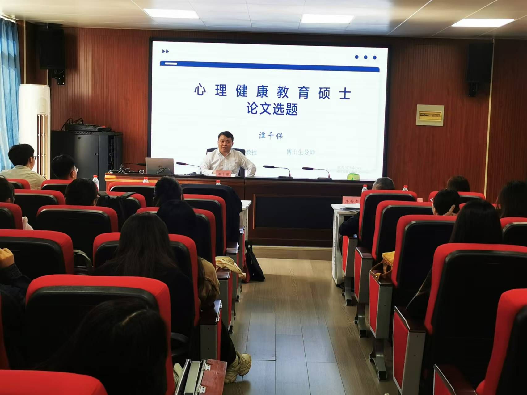 为进一步提升心理健康教育领域硕士研究生的科学研究素养与能力,2024年11月9日,我院特邀请湖南科技大学谭千保教授在行知楼408报告厅开展题为“心理健康教育硕士论文选题”的讲座。2023级、2024级心理健康教育硕士研究生与会学习,讲座由我院研究生秘书刘世瑞副教授主持。
