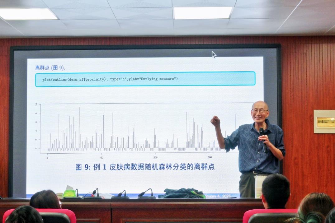 报告会上,吴喜之教授以新的视角探讨了机器学习、线性模型统计等问题,提出多种情境下不同的数据的分析方法。此外,吴教授还介绍了随机森林在数据统计、人工智能领域的应用。