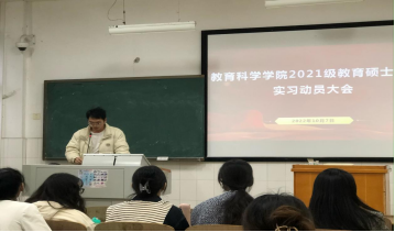 2022年10月7日下午,我院在东校区文科楼D307教室通过线上与线下相结合的方式召开了2021级教育硕士实习动员大会。教育科学研究院副院长邓育武、教育管理专业负责人何敦培教授、研究生秘书王祖霖老师、研究生辅导员杨威老师及全体2021级教育管理专业和心理健康教育专业全体硕士研究生参加。会议由副院长邓育武主持。