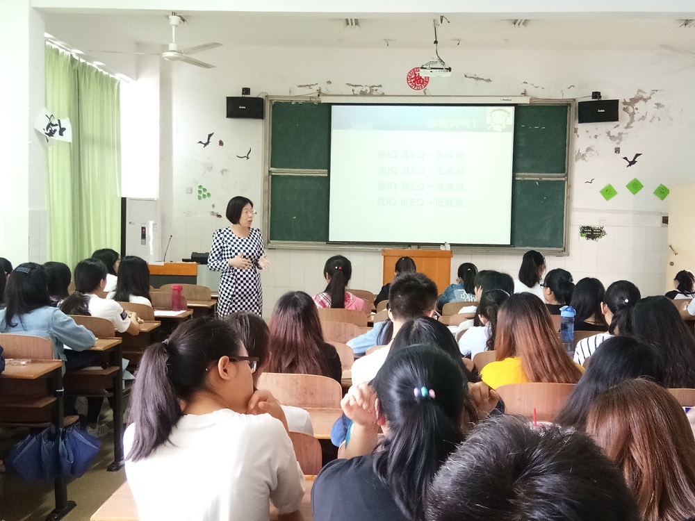 6月16日下午我院在文A307教室开展了行知书院教育讲堂第二讲——我的情绪我做主—负面情绪管理艺术,由副院长蒋湘祁主讲。